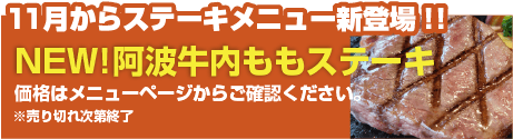 阿波牛と溶岩プレートを使用したステーキ&ハンバーグ料理がメインのレストランです。阿波牛の一口ごとに感じる贅沢な味わいと、心温まるサービスをご堪能ください。